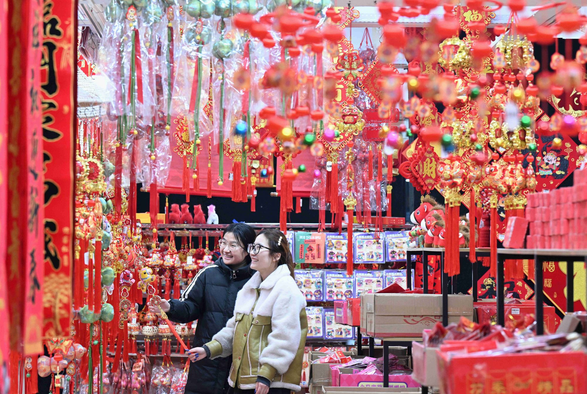 1月25日,市民在河北省石家庄市义堂年货市场选购春节饰品。新华社发(陈其保摄)