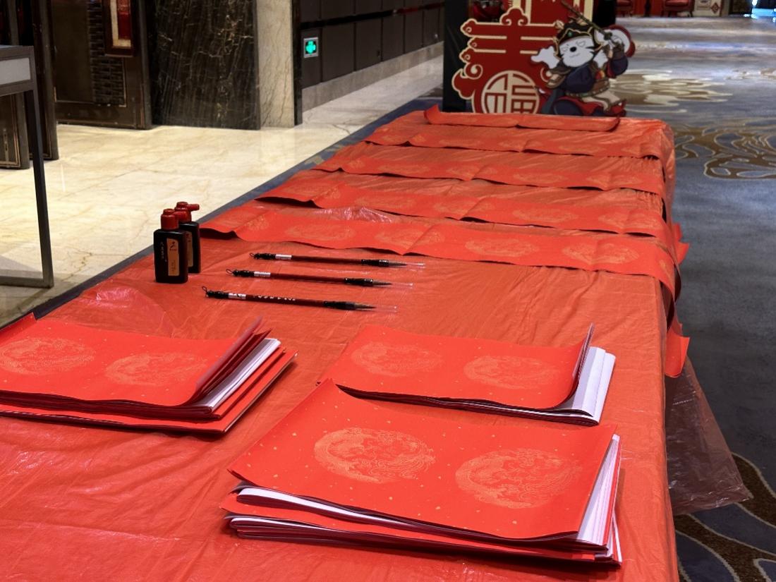 DIY手工喜乐汇,笔墨传情迎新春:特设春联福字DIY活动区,邀请宾客亲手书写新春祝福。笔墨纸砚已备好,无论是挥毫泼墨的书法爱好者,还是初次尝试的小朋友,都能在这里体验手工创作的乐趣。一笔一划皆是心意,一张春联、一个福字,不仅承载着对新年的美好期许,更能将亲手制作的年味带回家,让新春更具仪式感。