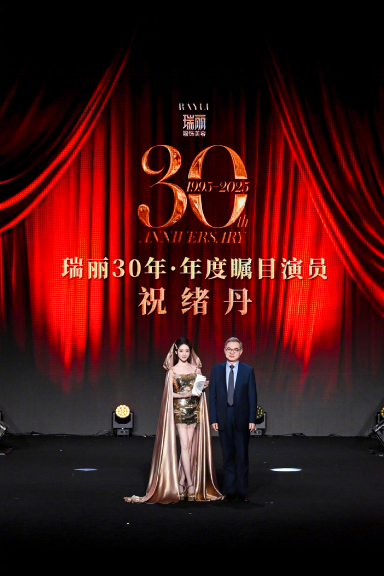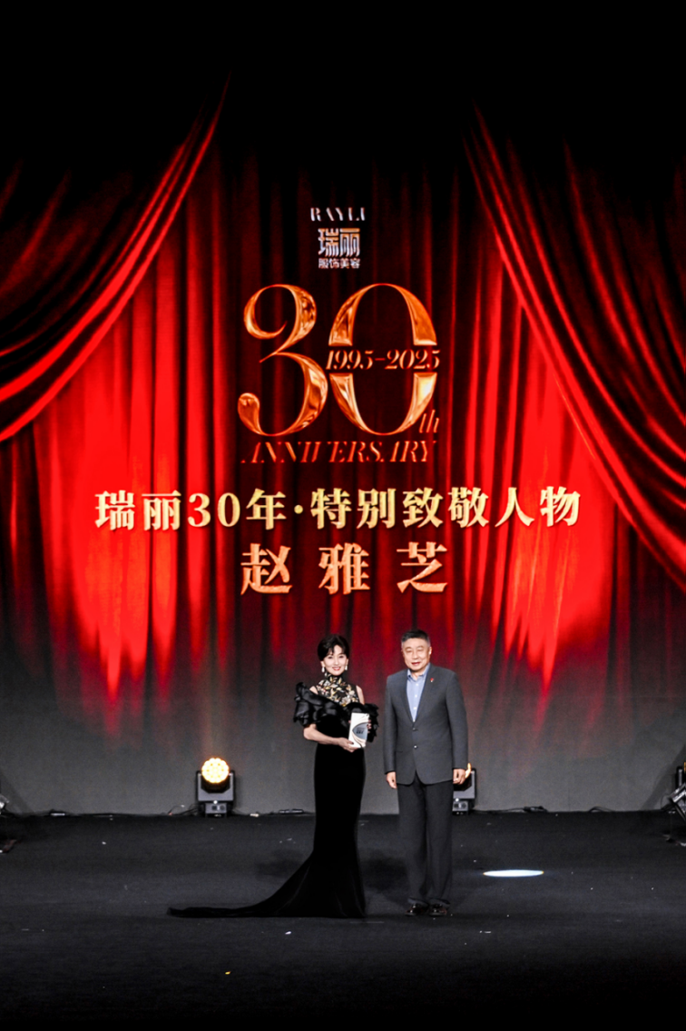北京《瑞丽》杂志社有限公司董事长陈业进先生为祝绪丹颁发瑞丽30年·年度瞩目演员奖项