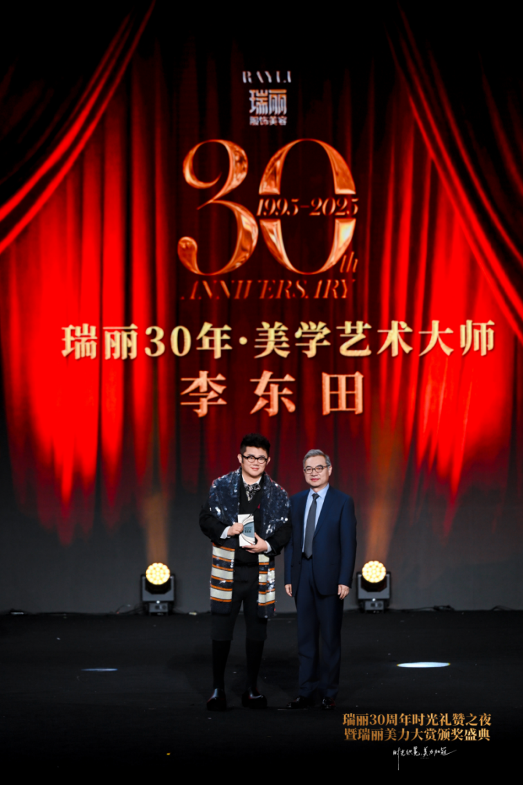 美学的旅程,始于远见,成于坚守。盛典首先向行业同行者致以崇高敬意。明星化妆大师、NAN BEAUTY创始人春楠荣获“瑞丽30年·明星美学家”,他从《瑞丽》片场出发,以细腻笔触定义风格,重塑妆容美学。时尚艺术家、东田造型创始人李东田获颁“瑞丽30年·美学艺术大师”,他不仅塑造面孔,更树立行业标杆,推动中国时尚造型步入黄金时代。