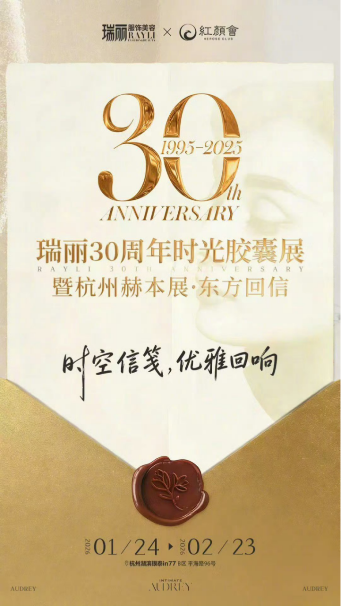 同期启幕的“瑞丽30周年胶囊展暨杭州赫本展·东方回信”,自2026年1月24日至2月23日在杭州湖滨银泰in77 B区平海路96号展出。1995—2025,《瑞丽服饰美容》的三十年,是记录潮流的三十年,更是书写潮流的三十年。我们以时尚为笔,写下一封致时代的长信,并携手「赫本展」,向世界发出东方的问候。这并非单向致敬,而是一场跨越时空的双向对话——在经典的映照中,见证中国女性之美的演变与独立。这封信,写给时代,更写给每一个正在定义自身“美力”的你。