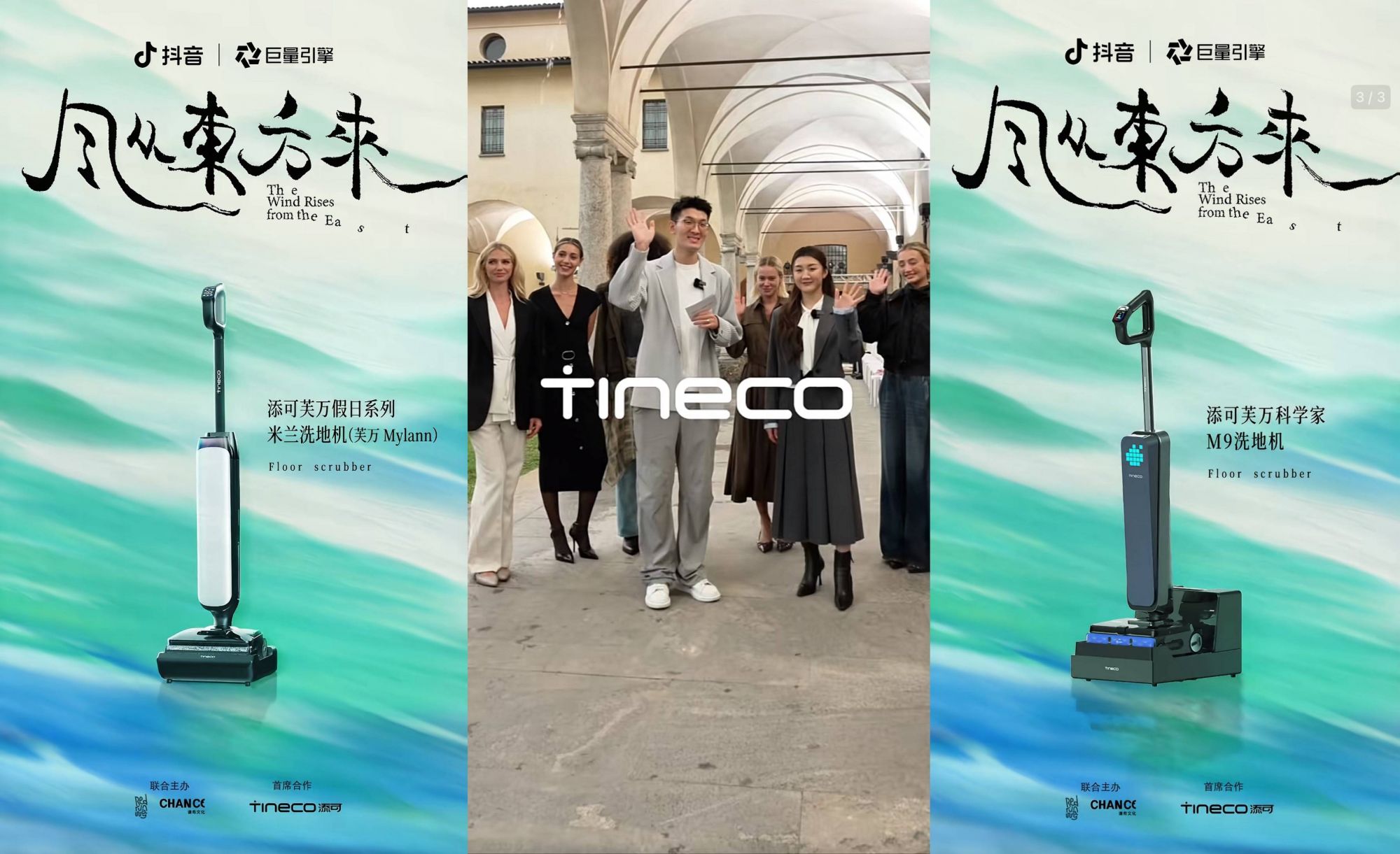 在添可与《风从东方来》米兰时尚IP的联动中,双方的合作并未停留在常规的广告植入,而是深度共创了抖音专供新品——“米兰假日”洗地机。添可将新品发布置于米兰时装周秀场,通过明星秦岚及超模团队走秀,演绎“TA的生活就是秀场”的核心概念,成功将产品从家居清洁工具升维为时尚美学符号。后续通过精准的大促节奏承接,该专供品销售额突破1.5亿 ,并在“美学心智”上占据行业第一。(*数据来源于添可)