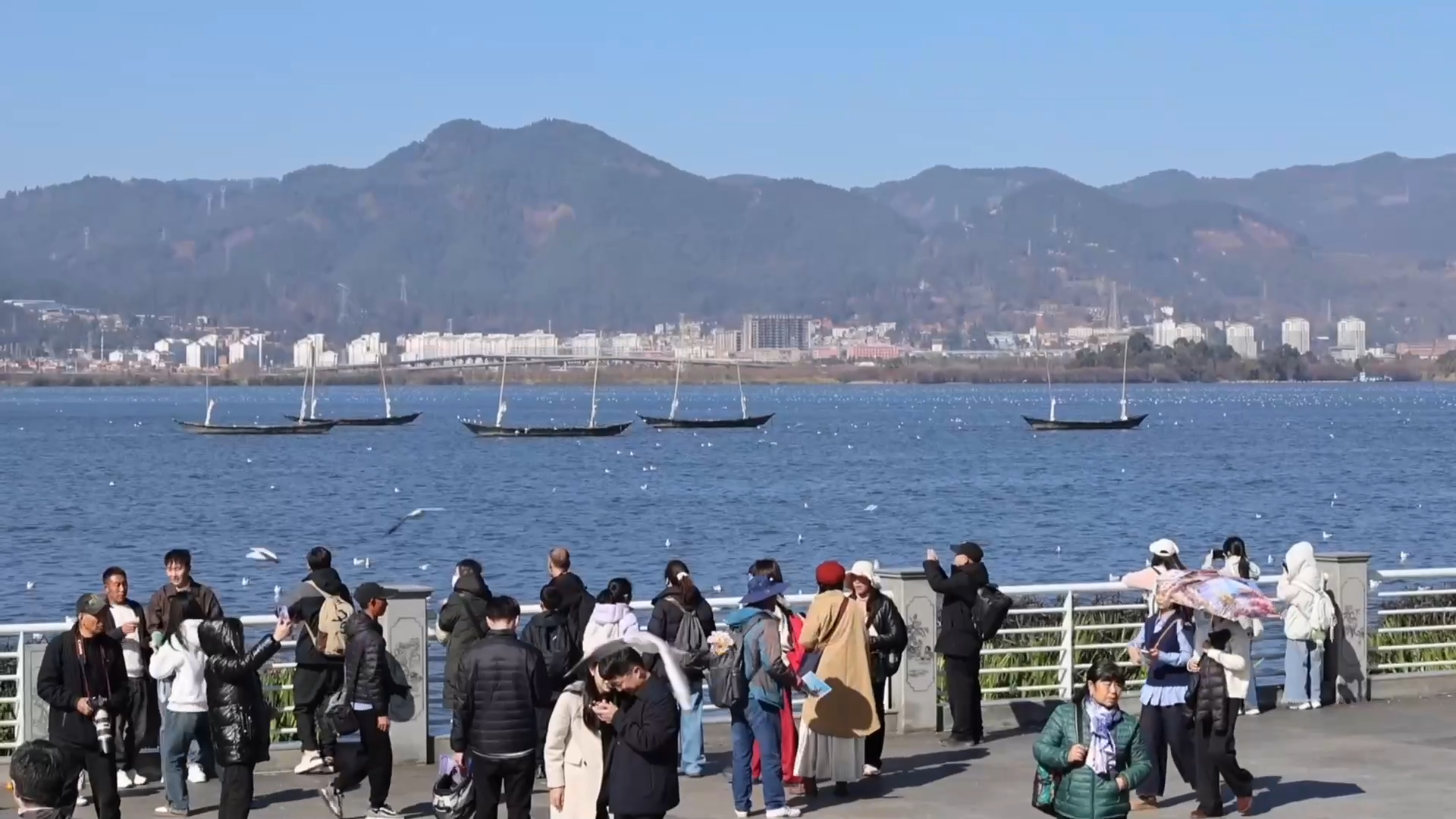自1985年以来,红嘴鸥已连续41年来昆明越冬,成为昆明文旅的一张名片,每年吸引着大量游客前来观赏,同时也形成了迸发活力的“观鸥经济”。