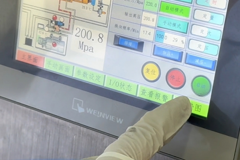 针对高校科研、企业研发等小批量场景,两款设备兼具灵活与高效。HPW-10输出流量0.15L/min、产量10L/h,最小处理量仅20ml,适配珍贵样品实验,220V电压驱动、80KG重量,移动安置便捷。HPW-20作为升级款,流量提升至0.33L/min、产量20L/h,最小处理量50ml,满足小试到中试过渡需求,双向增压技术与触控屏设计提升研发效率。两款均支持0-420MPa压力调节,耐受粘度<2000cp,适配100μm以内进料颗粒,覆盖实验室主流需求。