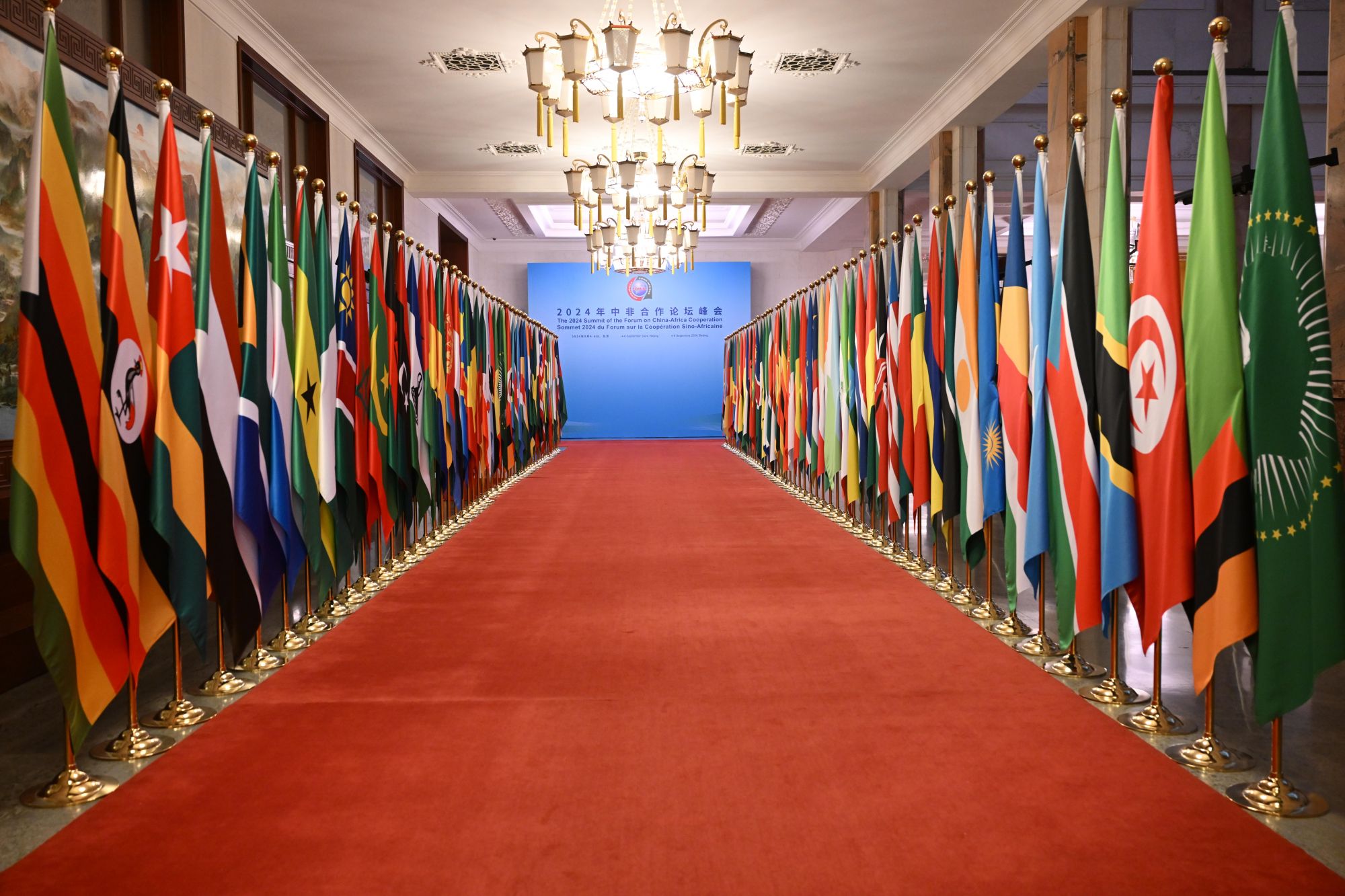 2024年9月5日上午,中非合作论坛北京峰会在北京人民大会堂开幕。这是峰会开幕前拍摄的北京人民大会堂内景。新华社记者 金良快 摄
