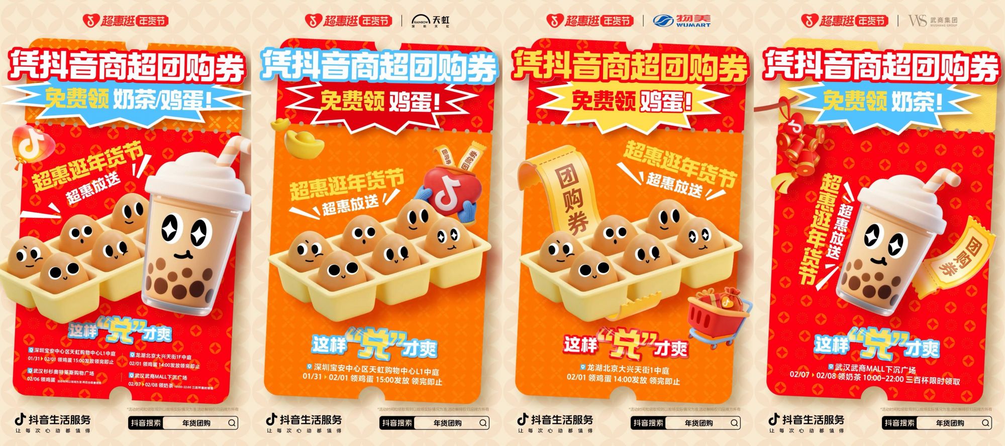 团年货的惊喜“彩蛋”,从解锁“零元购”鸡蛋和奶茶开始!1月31日-2月8日期间,凭抖音商超团购券就能在活动指定商超免费领取鸡蛋和奶茶,快来把好价年货和超值赠礼一起带回家,年货之旅才算圆满。
