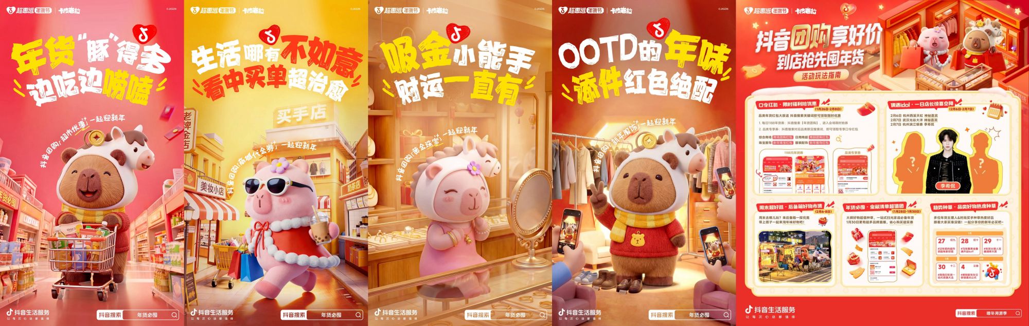 惊喜还在持续解锁中!「超惠逛年货节」联合大热IP卡皮巴拉豚咔咔在10家商超,7家商场打造主题场景,来逛街就能偶遇卡皮巴拉特色场景,喊上好朋友们,留下新年快乐的第一张合影。