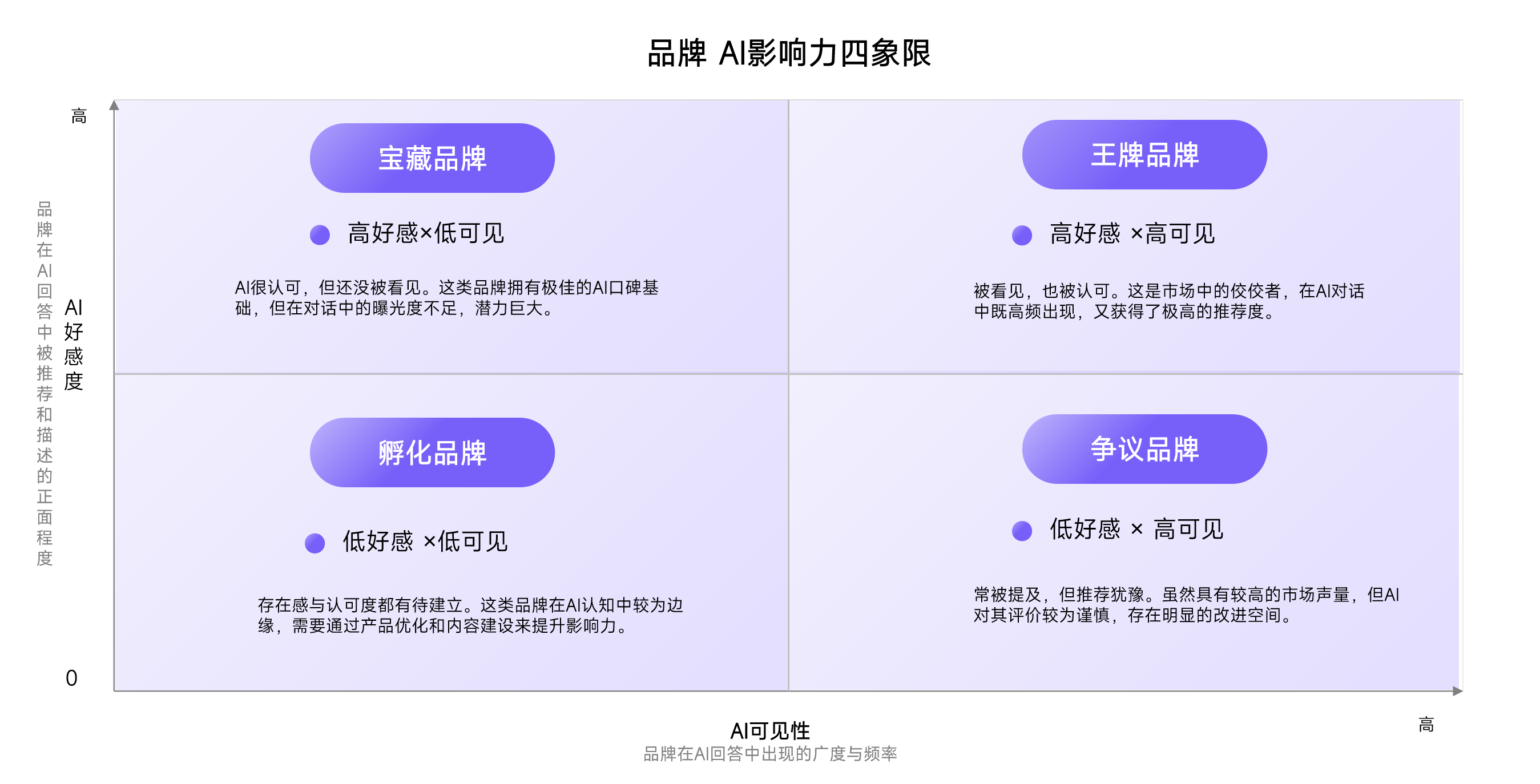 • AI可见性:量化品牌被AI提及的广度与频率。它衡量的是品牌信息进入AI“候选集”的能力,是产生任何影响的认知基础。