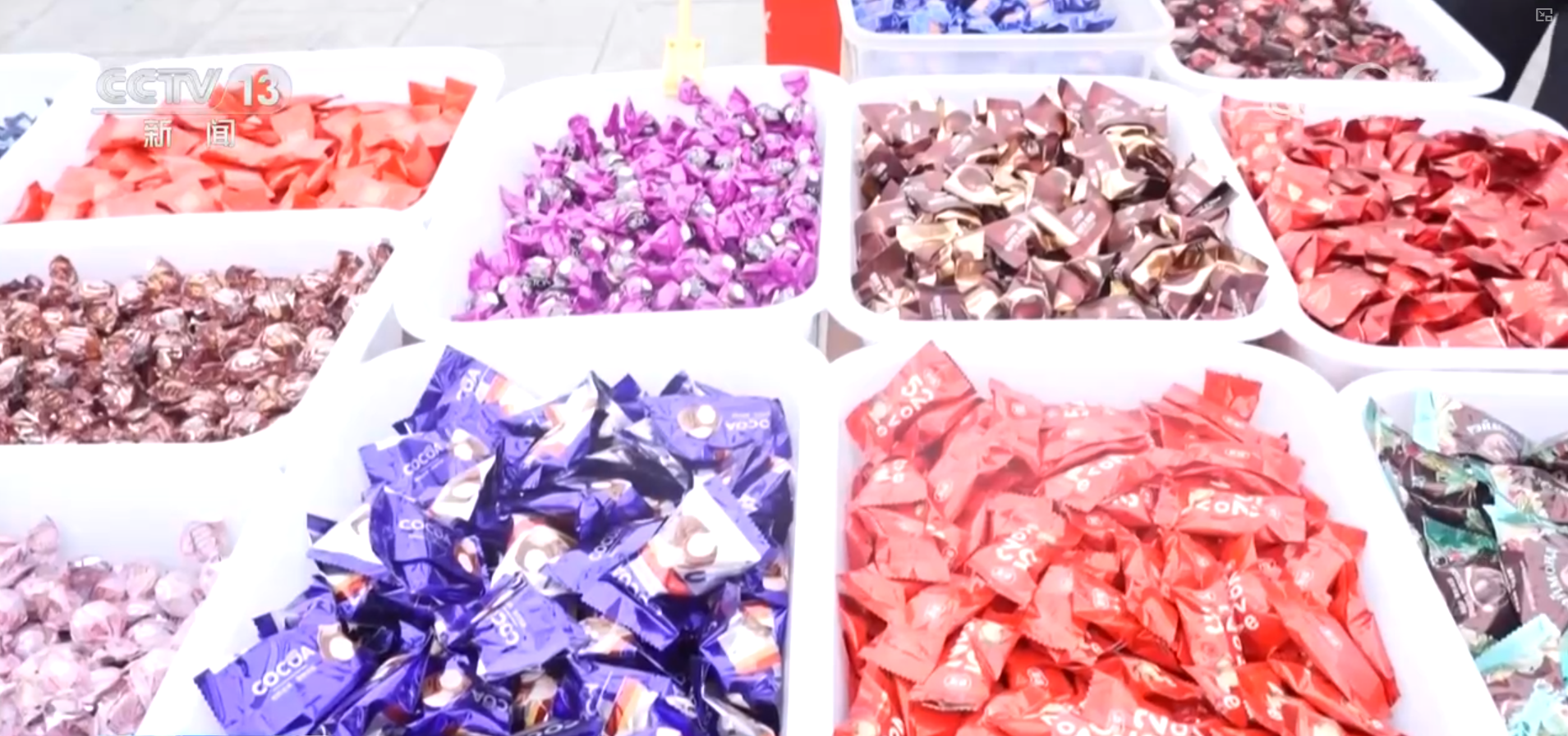 除了地道的东北年货,大集里还有俄罗斯糖果、咖啡等进口商品。商户们各显其能,来自全国各地的游客则尽情体验、选购,感受着别样的东北风情。