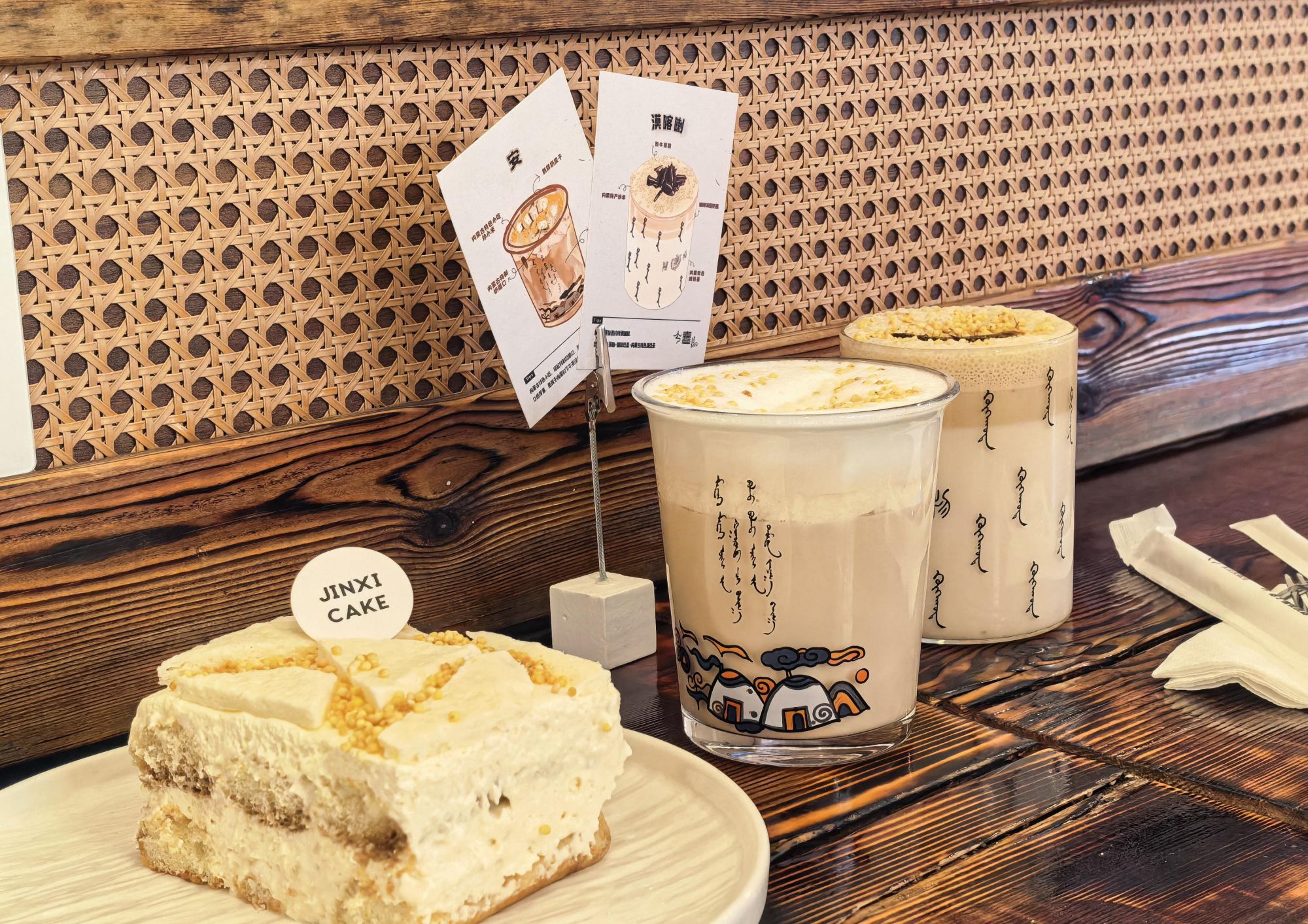 传统技艺之外,现代消费场景也在老街悄然生长。几家风格时尚的文创咖啡与甜品店与古色古香的街景形成鲜明对比。蒙古包造型的马卡龙、山楂奶糕配奶嚼口……塞上老街上“今喜咖啡”店打造的多款新式甜品,刷新着游客对草原味道的想象。店主朱玲把内蒙古特色融入西式甜品中,店内常常一座难求。“我想用年轻人熟悉和喜欢的方式,展示我们的传统美食和文化。”她说。