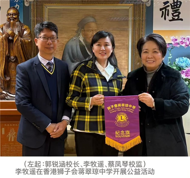 第二天,李牧遥同潘明珠又到了狮子会蒋翠琼中学继续开展《郁金香》公益赠书活动。郭锐涵校长与蔡凤琴校监为李牧遥颁发荣誉锦旗并赠新年礼物,郭校长邀请李牧遥春节后入校开展读书分享会,她欣然应允。