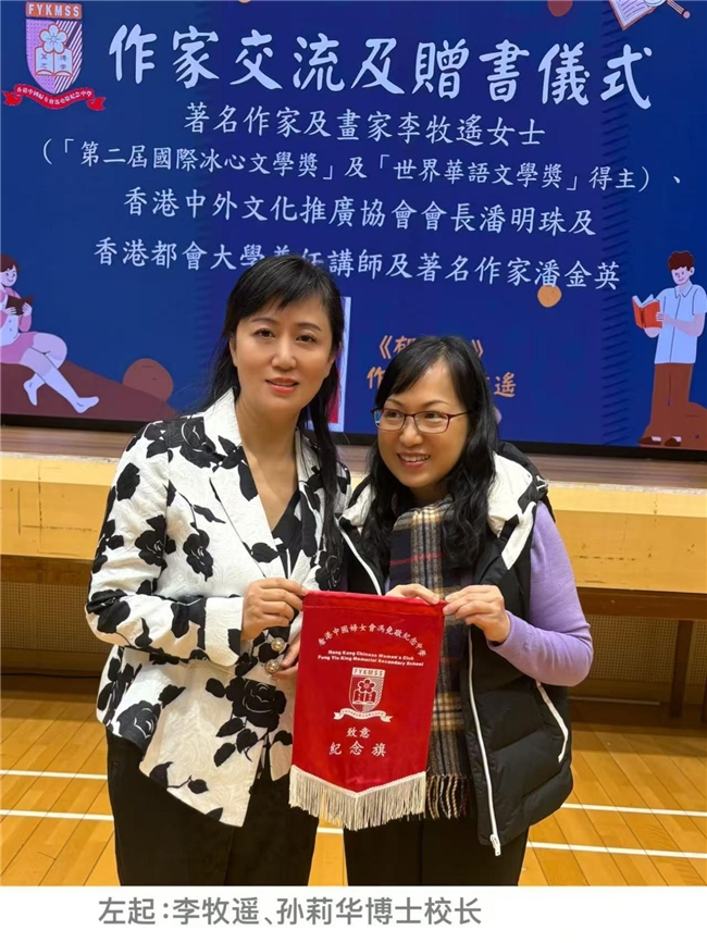 2026年1月21日,李牧遥从新加坡返回香港,她马上走进香港校园,开展了公益赠书活动!她首先同香港中外文化推广协会会长潘明珠、著名作家潘金英携手到了香港中国妇女会冯尧敬纪念中学开展《郁金香》公益赠书活动。