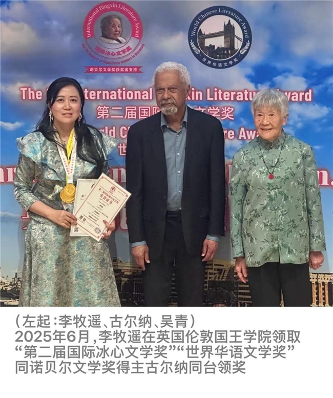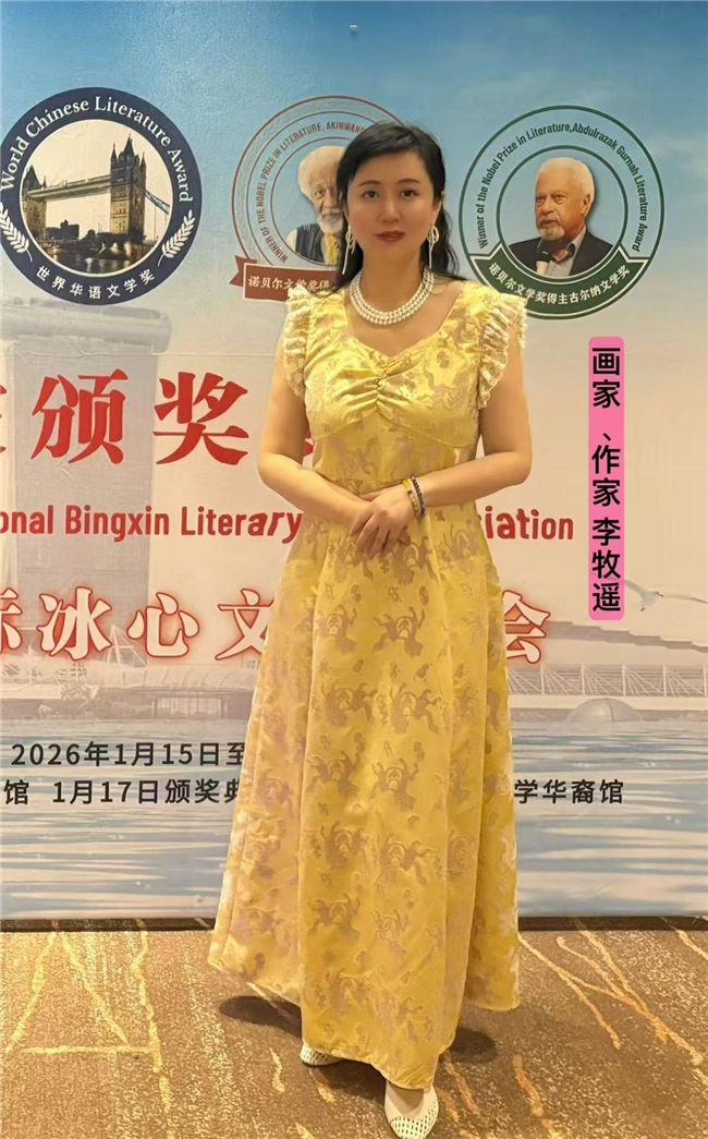 李牧遥早在2025年6月就在英国伦敦国王学院获取第二届国际冰心文学奖和世界华语文学奖,凭借多年来在文学与艺术领域的深耕积累,成为组委会认可的合适人选。