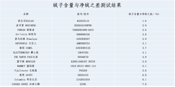 图片来源:羽绒服装比较试验报告【绒子含量与净绒之差测试结果】