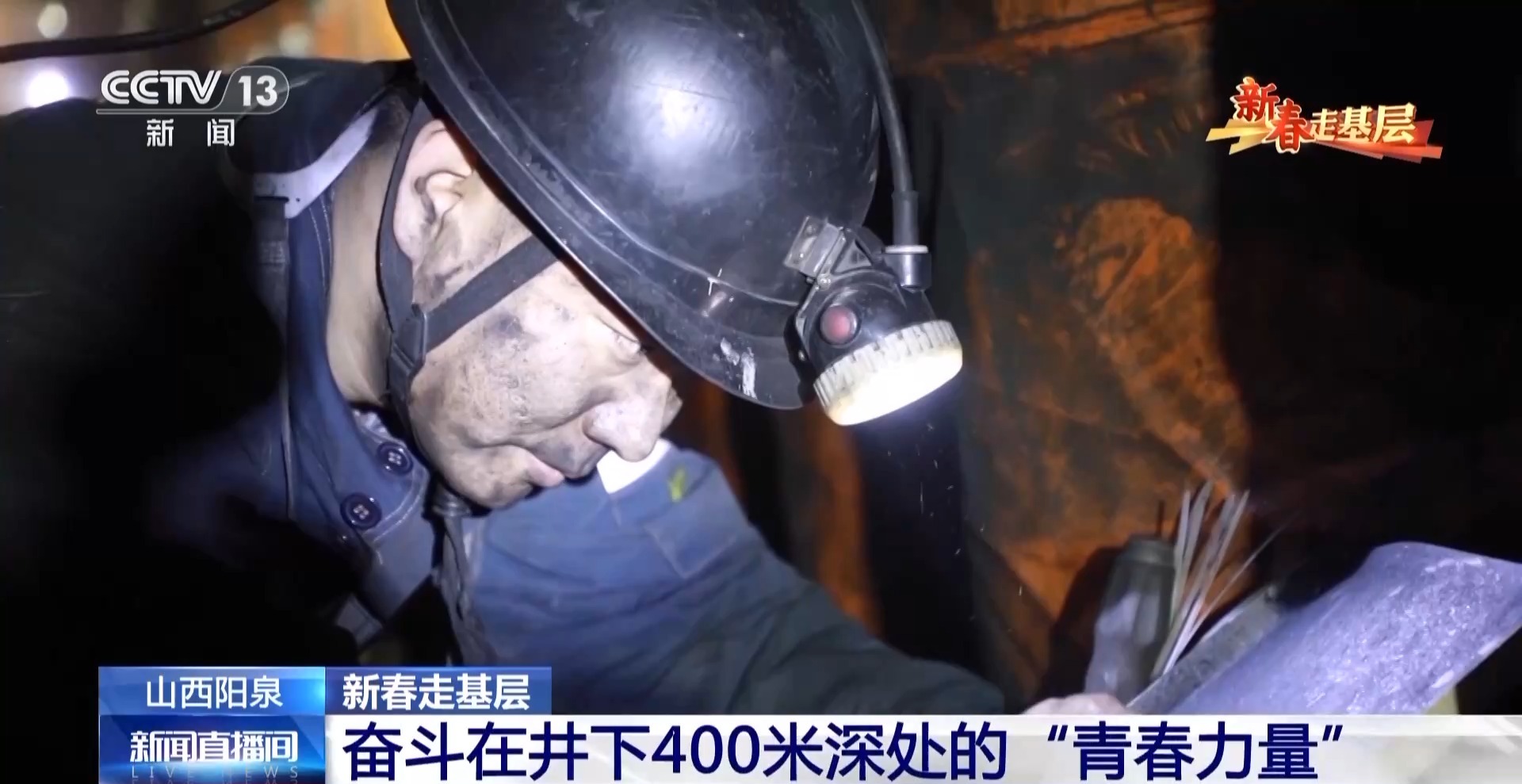 总台记者 崔肖冉:现在我们终于到了这个采煤工作面,距离地面的垂直距离大概有400多米,现在我们要钻过这个铁桥,来到采煤的一线。
