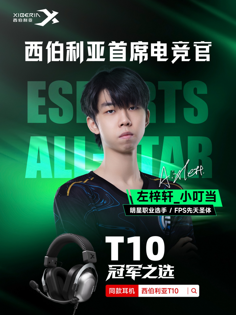 近日,国内FPS电竞圈迎来重磅跨界联动:拥有“FPS先天圣体”之称的顶流主播、职业选手左梓轩_小叮当(别名XDD)正式出任西伯利亚首席电竞官,而西伯利亚T10四腔体战术耳机同步成为其游戏同款耳机。此次强强联合,将职业选手的专业极致体验与外设品牌的技术实力深度绑定,为FPS玩家带来更贴合赛场需求的专业装备选择。