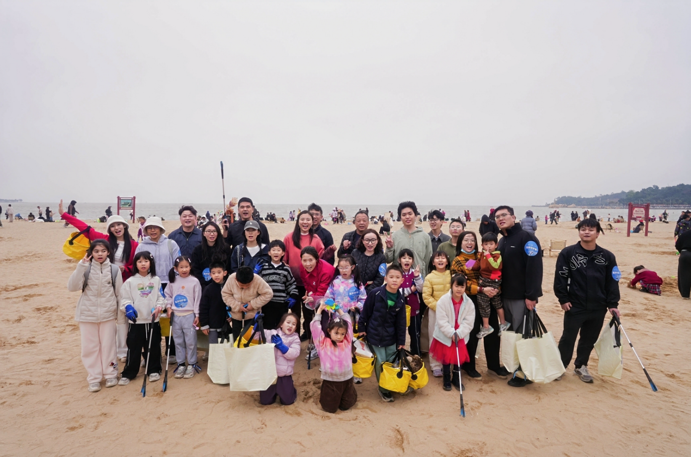 活动现场,亲子家庭并肩协作,家长带领孩子弯腰捡拾垃圾,在实践中传递环保理念,不放过沙滩上的任何一处卫生死角。大家分工明确、默契配合,重点清理塑料瓶、塑料袋、废弃渔网、泡沫残片等各类垃圾,用每一次弯腰、每一袋收获,践行着环保责任。经过数小时的努力,原本散落杂物的沙滩逐渐恢复洁净本色,呈现出蔚蓝海岸的本真之美。