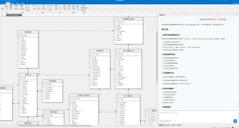 AI助手不仅能理解模型结构,还能生成详细的转换计划,定义核心类、属性及关系,极大提升了本体构建的效率与标准化程度。