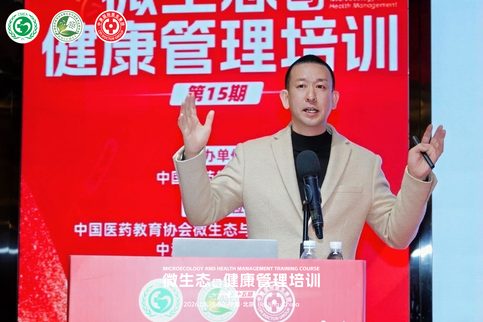 2026年1月28日至30日,由中国医药教育协会主办,中国医药教育协会微生态与健康专业委员会与中源国际医生集团联合承办的“第15期微生态与健康管理培训”在北京西国贸大酒店成功举办。