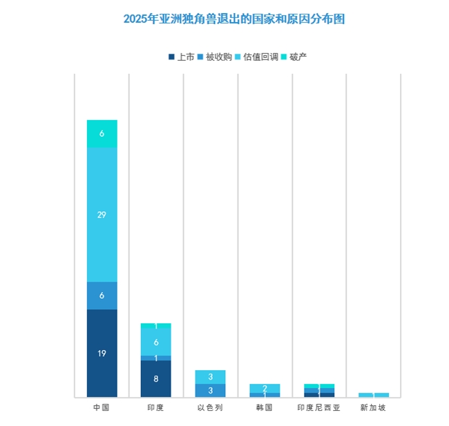 综合来看,亚洲独角兽退出数量是新增数量的2.3倍,直接导致了总量的净减少,估值回调是首要原因。这背后直接反映了市场正在经历一场深刻的估值重构和资本筛选,挤出泡沫,资源向真正优质的企业集中。