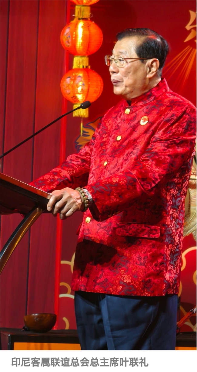 逢山开路遇水搭桥是客家人的精神,也是我们侨胞闯荡天下的底气,更是中印尼民心相通的密码。数百年来,客家先民带着崇文重教、诚信友善的优良传统与印尼各民族相融共生,既守护了文化根脉,更搭建了民间交流的桥梁,今天的晚会正是客家文化的精彩绽放,更是中印尼文化交融的生动见证,值得我们共同珍惜。