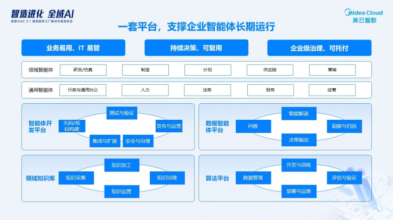 作为美的集团数字化和AI能力统一建设及对外赋能平台,美云智数致力于携手生态伙伴共建行业方案,推进供应链、制造、研发、财务等关键场景的智能体规模化部署,助力制造业实现从“有数据”到“用数据”,从“有人工智能”到“有业务智能”。依托美擎平台,美云智数将持续沉淀工业知识资产,推动更多行业和企业快速复制落地,为产业提供数字化与智能化升级支撑。
