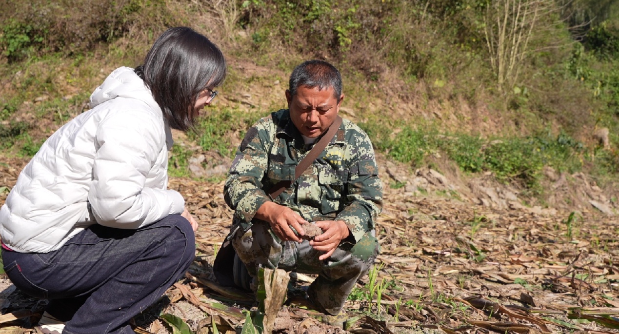 象群离开玉米地后,曼克老村村民李江美赶忙查看自家农田受损情况。刁发兴还身兼农户受损庄稼的理赔协勘员,需要在现场勘查记录损失情况,及时上报理赔公司,确保农户得到相应的经济补偿。