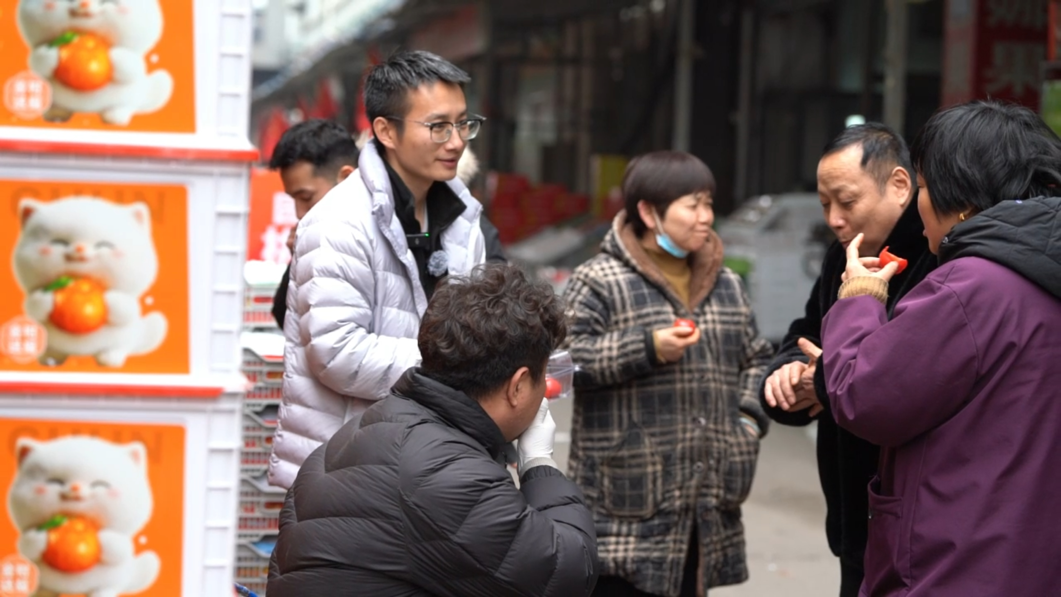 陈镇在听水果商反馈“喀柿红”口感