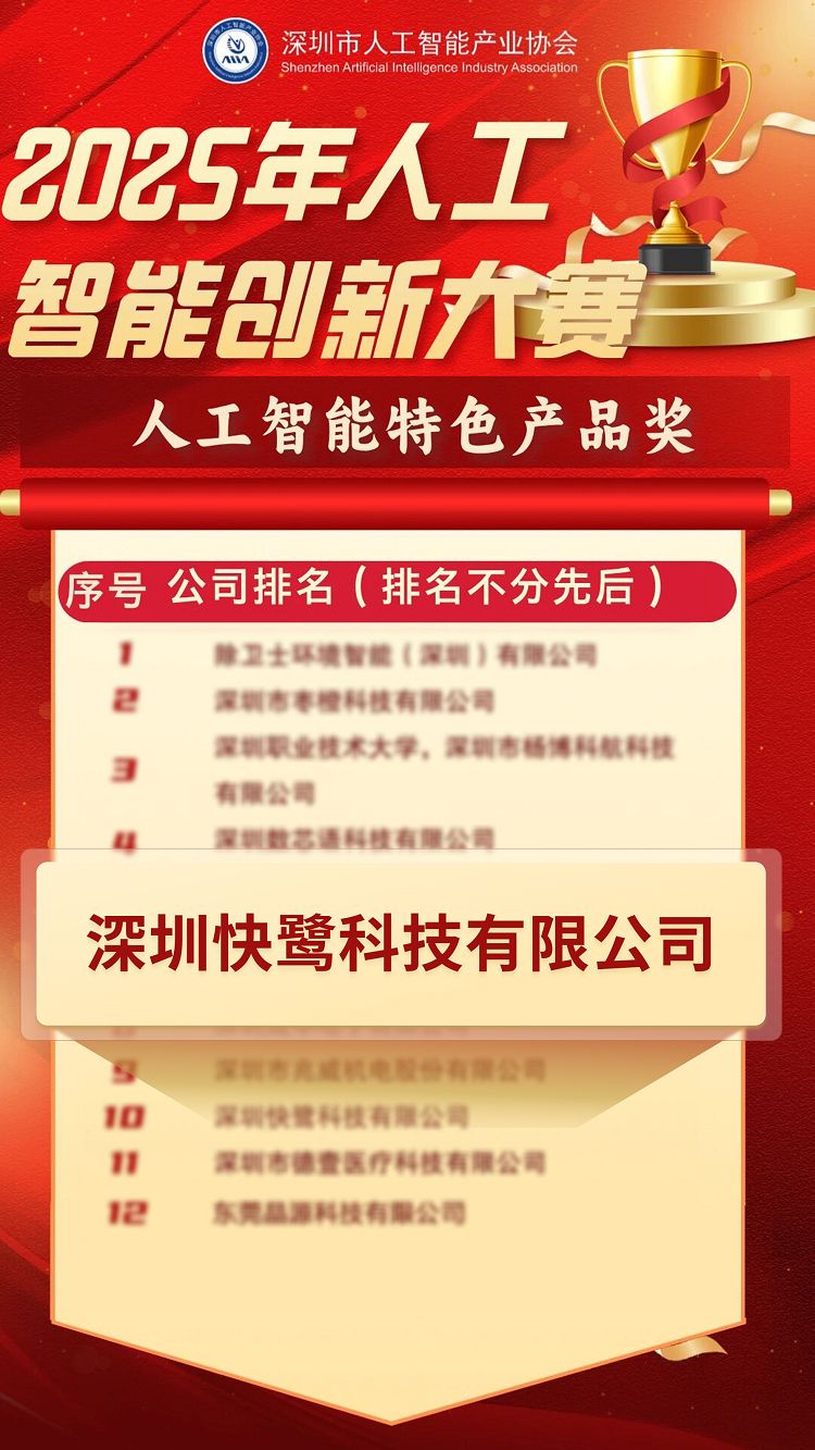 近日,由深圳市人工智能产业协会主办的年度人工智能骨干企业系列奖项认定结果正式揭晓,快鹭科技凭借深厚的创新积累与扎实的产品实力,旗下核心产品“快鹭云”成功斩获“年度人工智能创新评选——特色产品奖”,彰显了行业对其技术创新与产品价值的高度认可。
