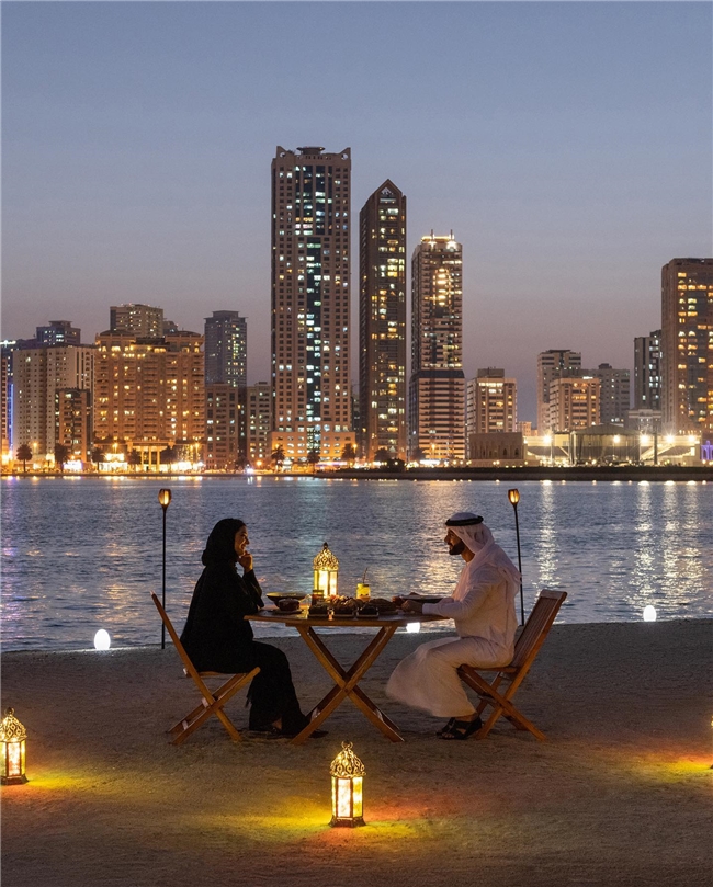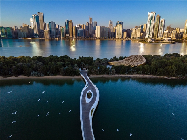 阿尔诺尔岛(Al Noor Island)静静坐落在哈立德潟湖(Khalid Lagoon)中央,走过湖滨栈桥,城市的喧闹被一步步留在身后,缓缓揭开一个自然、艺术与灯光交织的童话盒子。这里既是沙迦人钟爱的亲子乐园,也是摄影爱好者舍不得收起相机的灵感现场。