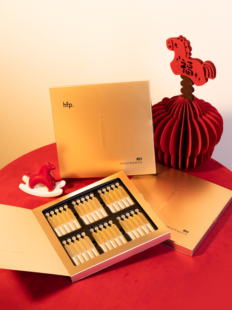hfp悬金次抛精华主打的是水油同补,一支同时焕亮锁水和修护屏障,让皮肤重回饱满亮泽的嫩滑感。