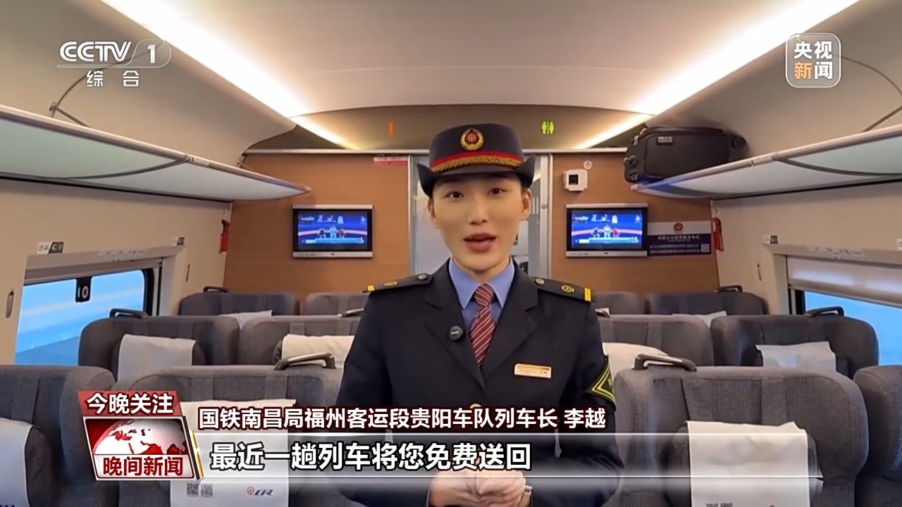 国铁南昌局福州客运段贵阳车队列车长 李越:您只需要找到列车的工作人员,出示身份证件,列车长核验好身份信息,开具客运记录。又有旅客问,我下车的时候该找谁呢,您先别着急,列车长会在最近的前方站将您交接下车,车站的工作人员会安排最近一趟列车将您免费送回。