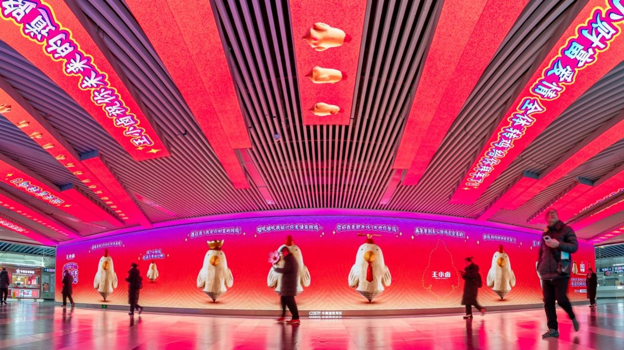 在武汉地铁通勤动脉化身为品牌画廊,地铁通道被“转鸡”视觉全方位包裹,让每日穿梭其中的年轻人在会心一笑中接收品牌传递的好运“转鸡”。