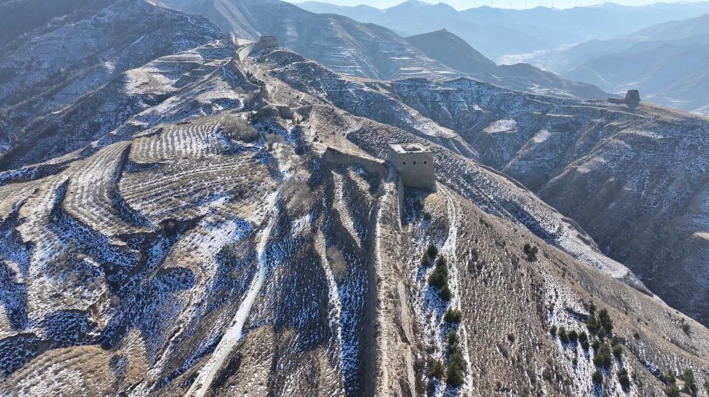 雪后的广武明长城(无人机照片)。新华社记者 张哲 摄