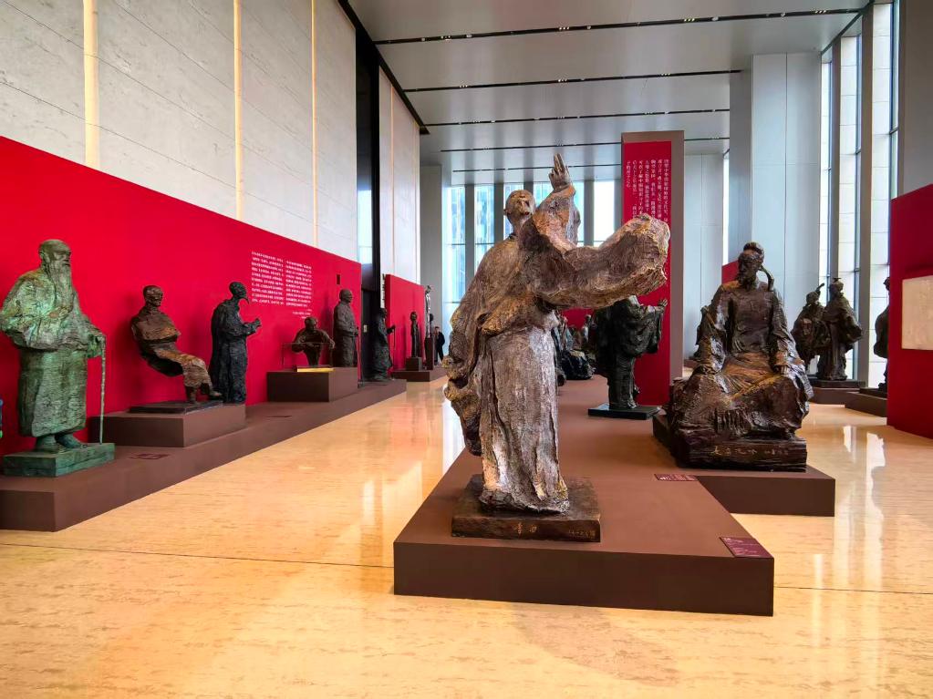 眼前这一座座雕像,塑圣人取其仁厚之魂,眉眼温润、身形端方,将“仁者爱人”的哲思凝于其中;刻诗人抓其浪漫之韵,衣袂翻飞、神态洒脱,以写意线条勾勒“孤鹜落霞”的诗意。塑革命先驱凝其浩然之气,取其最具张力的一瞬,或昂首赴义,或沉着奔走,不屈的意志与信念从劲瘦的躯体中磅礴而出,熔铸为民族危难时的不朽长城。