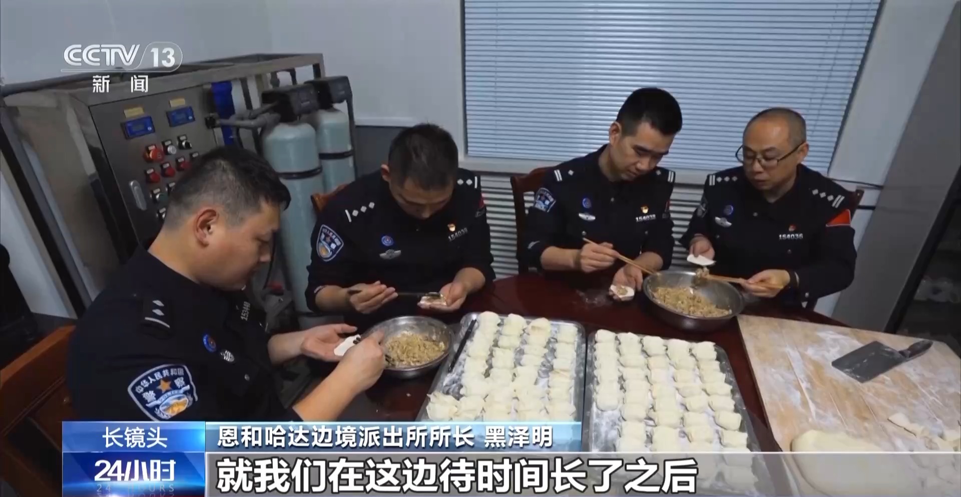 恩和哈达边境派出所所长 黑泽明:我们大部分时间都在单位住,回家的时间很少,一般一年也就回去两三次,时间很短。我们在这边待时间长了之后,这种感情一般人很难能体会到。工作27年了,其实最对不起的就是家人,我们不可能长时间回去,缺少的就是陪伴,亏欠的太多了,没法去表达。