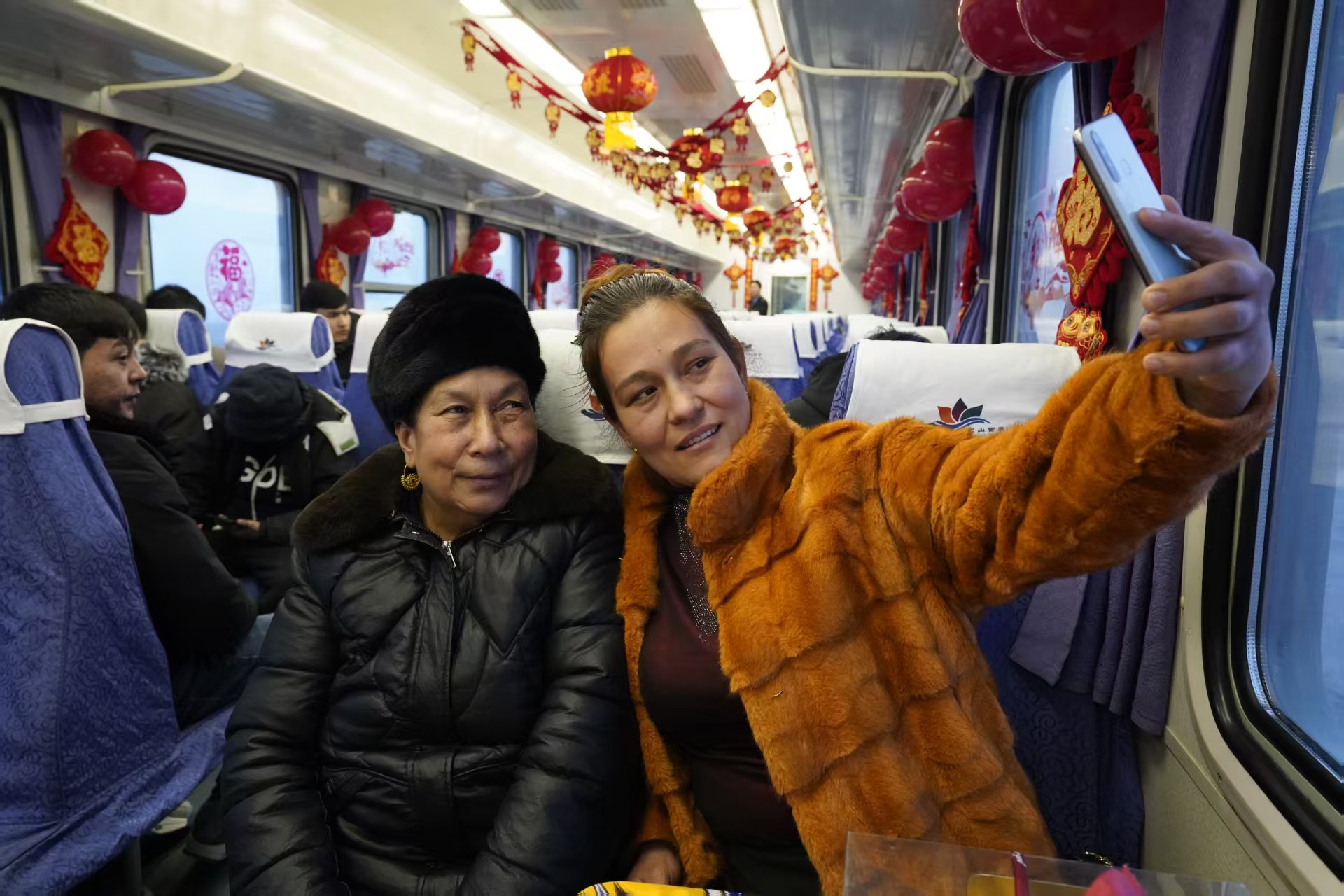 与阿卜来提·乃比同路的乡亲们,行囊里都装满了南疆各色特产。厚实的杏干泛着蜜色光泽,花样精巧的糕点码放整齐,核桃木雕成的小碗木纹如水波流转……南疆的特色风物在车厢里聚拢,人们过年盼团圆的喜悦在这方寸之间蔓延。