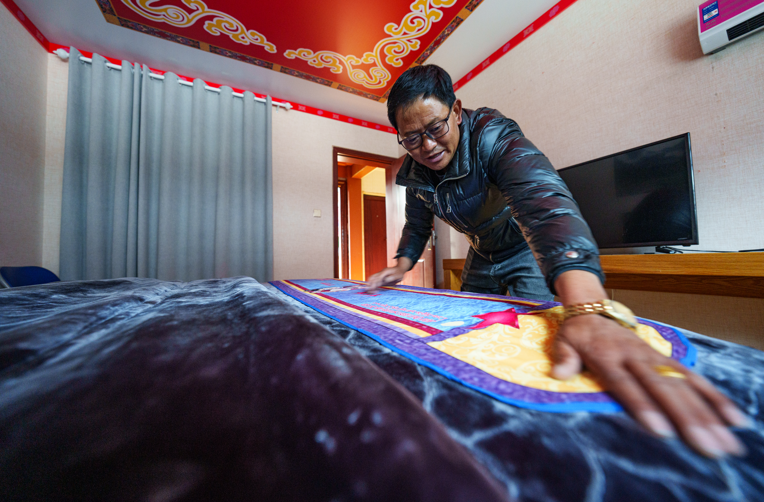 2月5日,玉麦乡村民旺庆在自家经营的民宿收拾房间。新华社记者 丁增尼达 摄
