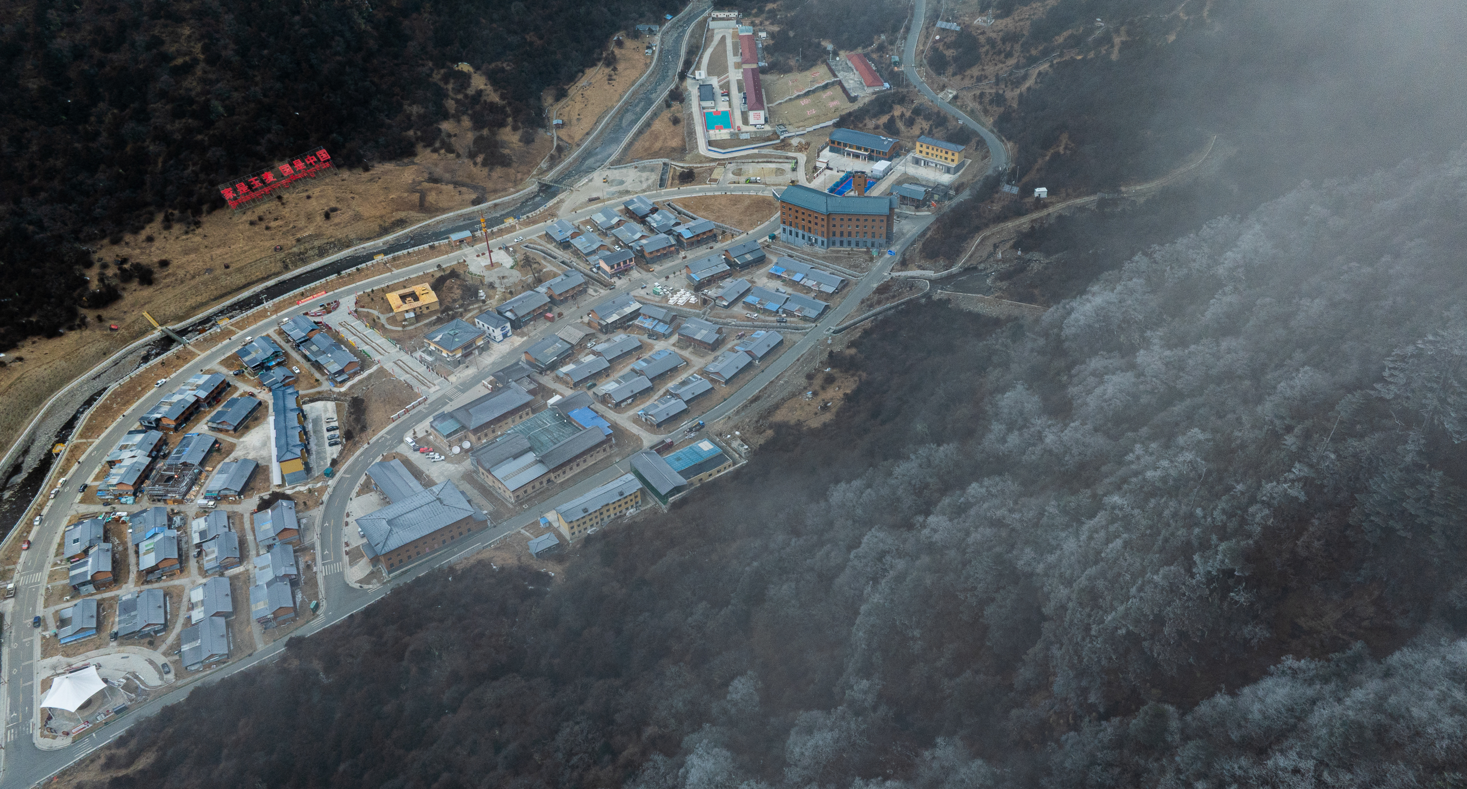 这是2月5日拍摄的云雾中的玉麦乡全景(无人机照片)。新华社记者 丁增尼达 摄