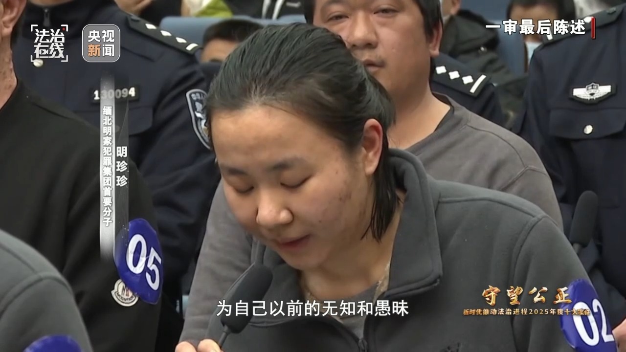 缅北明家犯罪集团首要分子 明珍珍:造成今天这样的局面,我感到很愧疚。如今我也深刻地意识到了自己的错误,为自己以前的无知和愚昧感到懊悔,对不起。