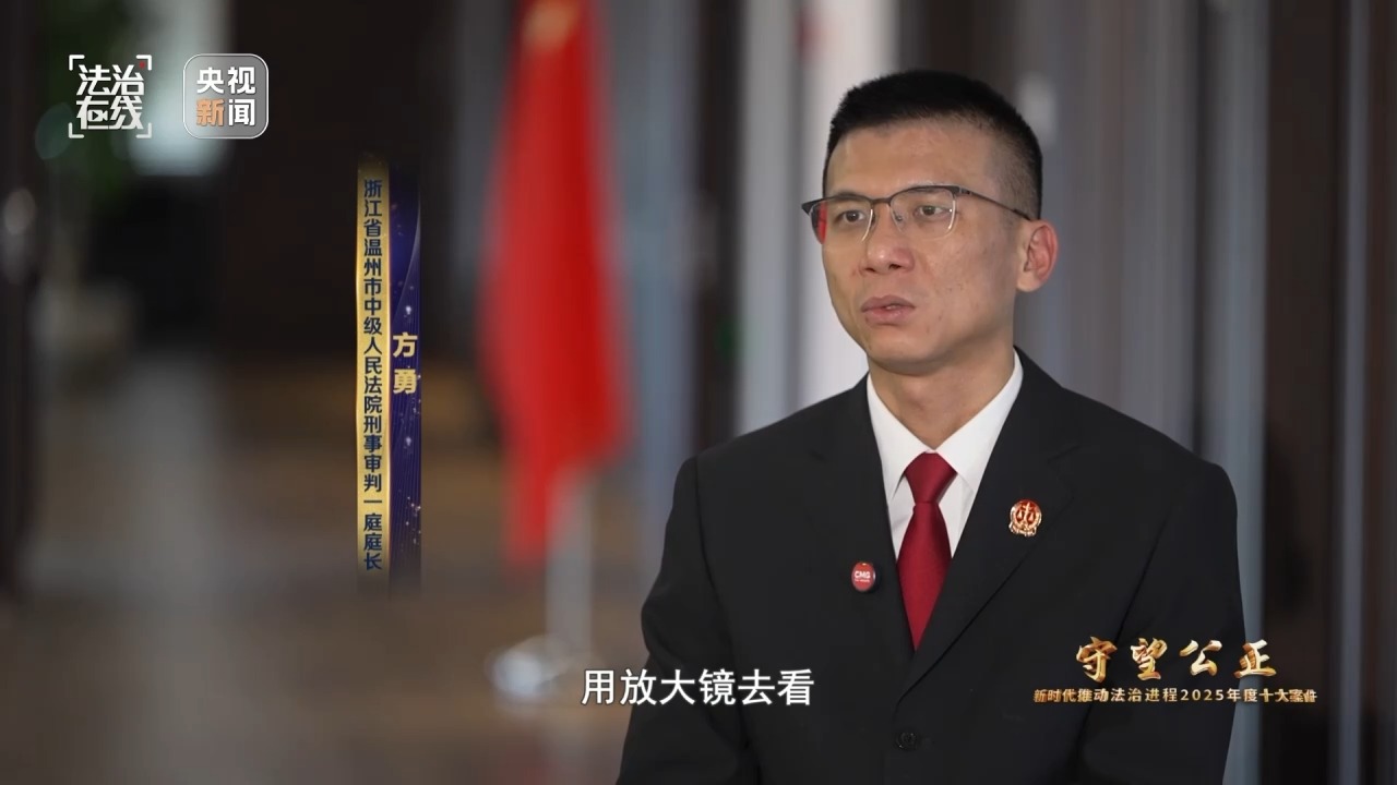 浙江省温州市中级人民法院刑事审判一庭庭长 方勇:无论这个案件证据收集有多困难,也无论这个案件它的意义有多重大,我们还是要掌握最严格的证据标准,最严格的程序要求,这个案件才能够拿到聚光灯下,用放大镜去看,也确保不出问题。