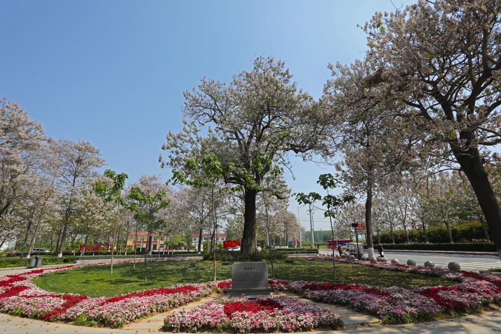 脚步来到焦裕禄干部学院。学院门前的广场上,焦裕禄当年亲手栽下的泡桐树幼苗,已长成华盖遮荫的参天大树。