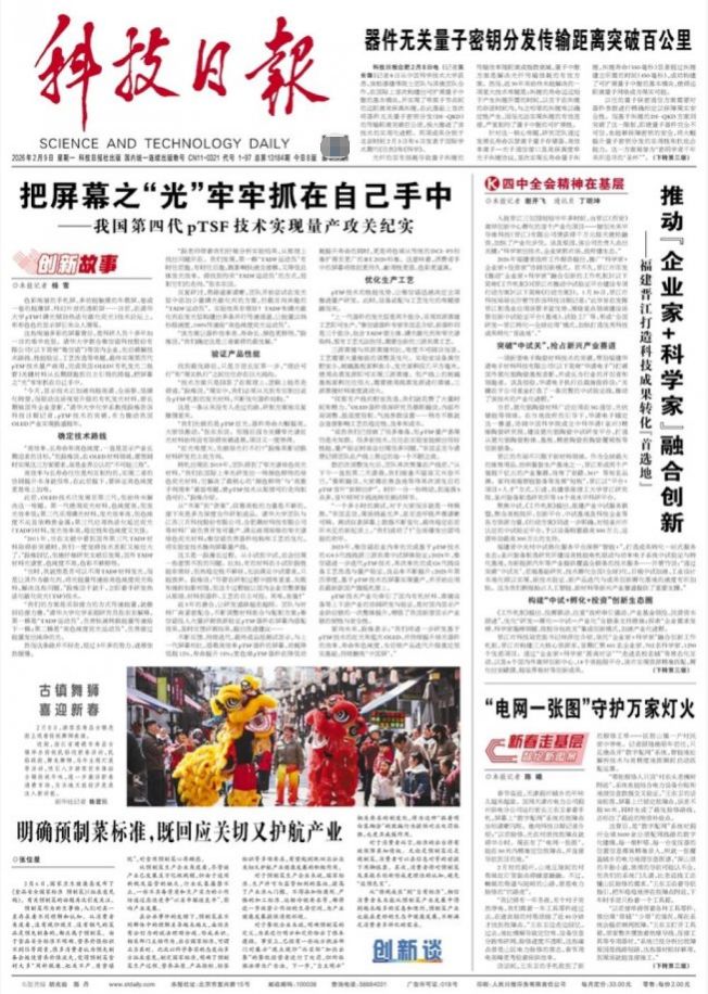 “今天,显示技术正加速向超高清、全场景、低碳化转型,而驱动这场视觉升级的有机发光材料,曾长期被国外企业垄断。”清华大学化学系教授段炼告诉科技日报记者,pTSF技术的突破,有力推动我国OLED产业实现换道超车。