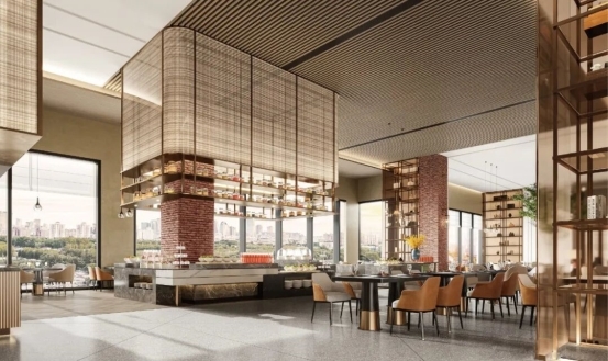 在服务生态构建上,酒店前瞻性打造“交通-住宿-消费”一体化闭环体系,通过专属连廊与定位为“Z世代枢纽消费新聚场”的万盛荟商业综合体无缝衔接。依托通马路枢纽商业街区“休闲餐饮+艺术场景”的核心定位,以及潮流精酿、品质美咖等多元业态布局,共同形成集高端住宿、多元购物、特色餐饮、亲子娱乐、社交休闲于一体的沉浸式都市微度假目的地。这一模式不仅将极大提升宾客体验的丰富度与便捷性,更将推动消费链深度融合,为副中心商圈活力注入新动能。