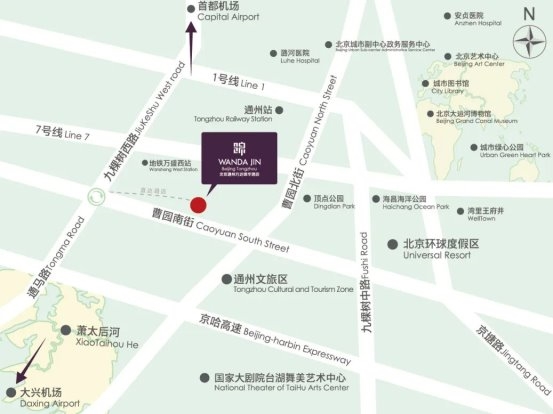 酒店所处区位优势显著,不仅实现与通马路枢纽无缝联动,更具备强劲辐射能力:距北京环球影城度假区约3公里,13分钟可达通州站,20余分钟直达大运河博物馆,50分钟车程内可覆盖首都国际机场、大兴国际机场及北京西站等重要交通节点。这一区位优势为承接环球影城客群外溢、保障区域商务休闲需求筑牢基础。