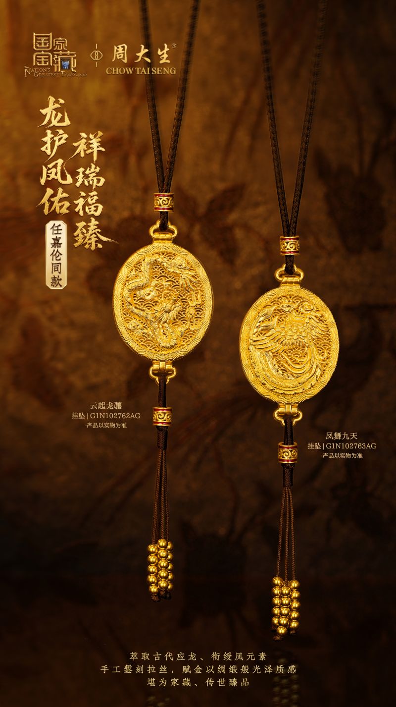 锦绣呈祥,祈愿美满良缘新春纳福,以家和为愿。值此佳节团圆时刻,既有阖家欢聚的温馨,亦是见证与祈愿美满姻缘的良机。周大生×国家宝藏谨以蕴含深意的国宝,诠释“一生一世”的东方浪漫。这份由匠心与传承织就的浪漫,最终凝练于可点睛、可品鉴、可家藏、可传世的国宝文脉臻藏金品中。其中,国韵锦绣·云锦系列的云锦龙凤香囊挂坠,灵感源自《国家宝藏》“万工轿”中的龙凤图腾。一龙一凤,各具神韵:云起龙骧香囊龙纹昂首振鳞,鳞爪分明,气度浑然;凤舞九天香囊凤姿羽翼层叠,尾羽舒展,仪态典雅。香囊背面饰以祥云缠枝团喜纹,含蓄蕴藏“龙凤呈祥、锦绣良缘”的东方吉庆美学。工艺上,品牌独家云锦织金工艺奠定底韵,再融汇手工錾刻拉丝,赋予金饰以丝绸般的温润质感,令龙的遒劲与凤的柔美跃然而出。整体设计细节考究,外框盘绕柔中带刚的水波纹,点缀温润如碧的宝石级透底珐琅,末端垂落灵动的流苏金珠。此香囊挂坠承袭古制,可开合添香,既宜日常佩饰,亦是承载“一生一世”誓约的礼赠佳选,为新春时刻注入圆满寓意。