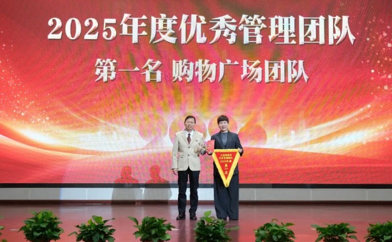 ▲黄志明先生为2025年度优秀管理团队第一名购物广场团队颁奖。