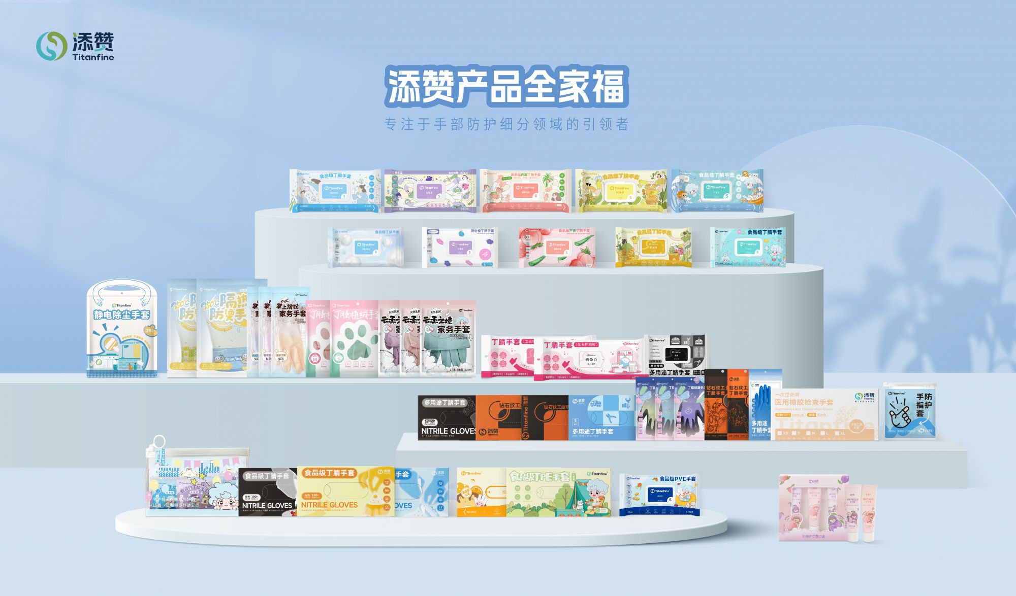 添赞Titanfine不止是手套品牌,更是深耕手部防护与养护领域的“手护伙伴”。品牌始终坚守初心,摒弃“手套仅为防护工具”的传统认知,专注“手部防养一体化”,致力于为全球家庭用户与行业伙伴提供专业化、全场景、一站式的手部防护与养护解决方案。依托覆盖家庭、食品、医疗、工业、无尘电子五大场景的产品矩阵,在安全可靠的基础上融入贴心设计。