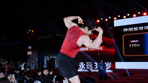 作为新健康运动的开创者、新健康理念的奠基人以及新健康生活的卓越践行者,盗龄医生创始人万百万博士以强健的体魄、媲美专业健美的肌脂比与唯美形体,深深震撼了现场的每一个人。他精神抖擞的讲演、意气风发的举手投足,充分展示了新健康运动的无穷魅力和重大社会意义,引发全场阵阵惊呼与热烈掌声。