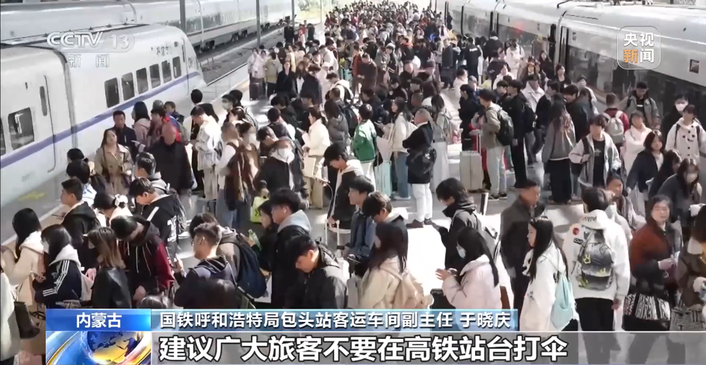 春运返乡可能遇到雨雪天气。如果在站台上打伞,列车进站时由于气流气压等变化,增加了撑伞者被“吸”向列车的风险。气流也有可能将雨伞带到轨道或卷到接触网上,影响列车安全运行。